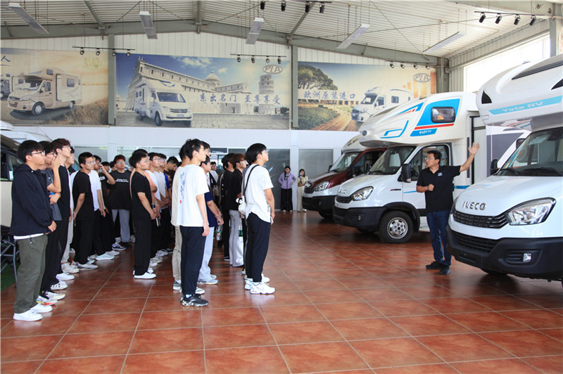 隨后,同學(xué)們移步至房車展示廳,各式各樣的房車讓人目不暇接。時(shí)尚的外觀設(shè)計(jì)、舒適的內(nèi)部布局,無(wú)不彰顯著科技與人文的完美融合。同學(xué)們紛紛走進(jìn)車內(nèi),親身體驗(yàn)房車帶來(lái)的便捷與愜意。有的同學(xué)感嘆于寬敞的內(nèi)部空間,有的則對(duì)智能化的電器設(shè)備贊不絕口。同學(xué)們饒有興致地參觀著每一款房車,感受著其獨(dú)特的設(shè)計(jì)理念和舒適的空間布局。